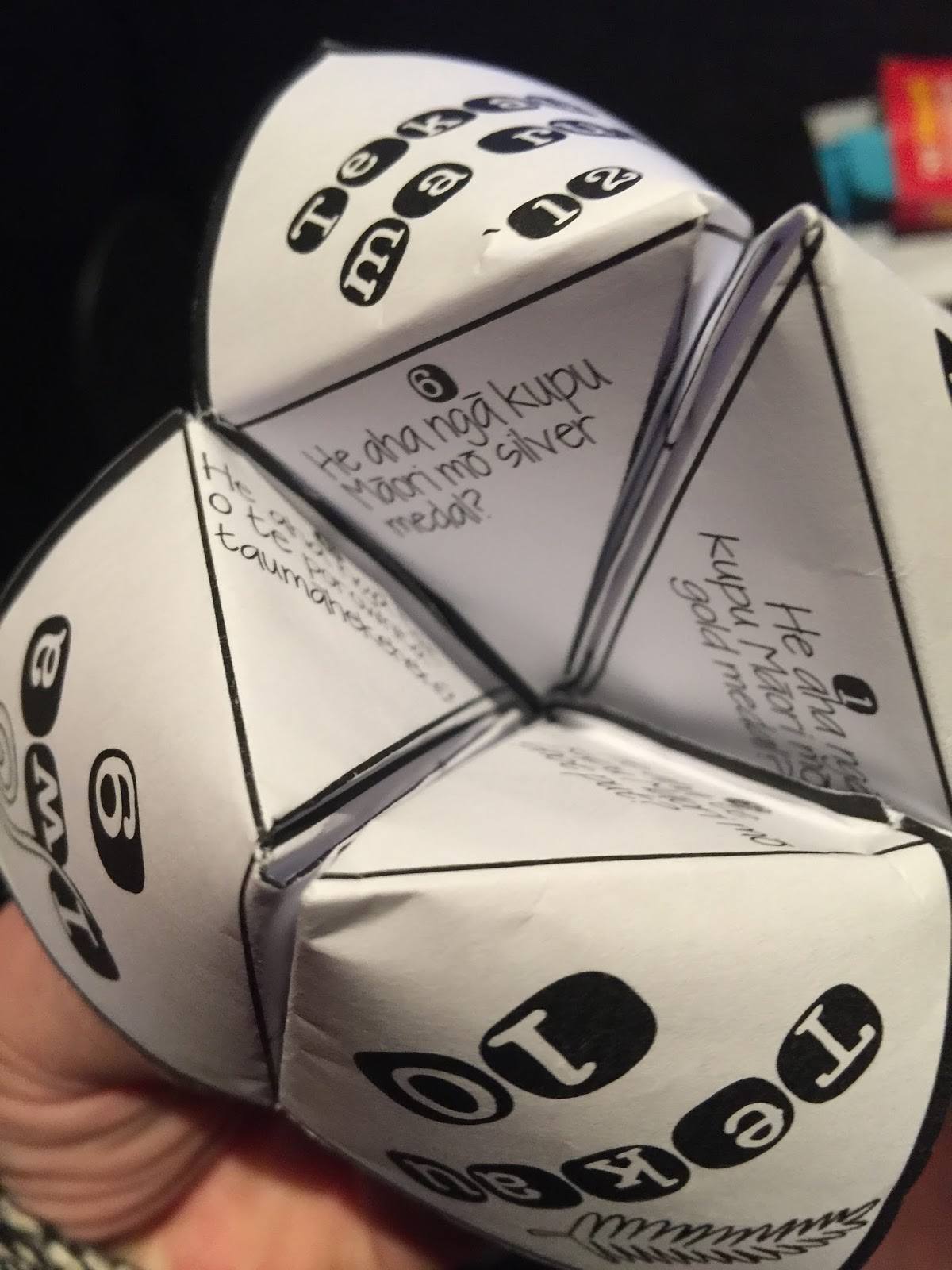 By playing this “fortune teller/cootie catcher” game we can learn these kupu: